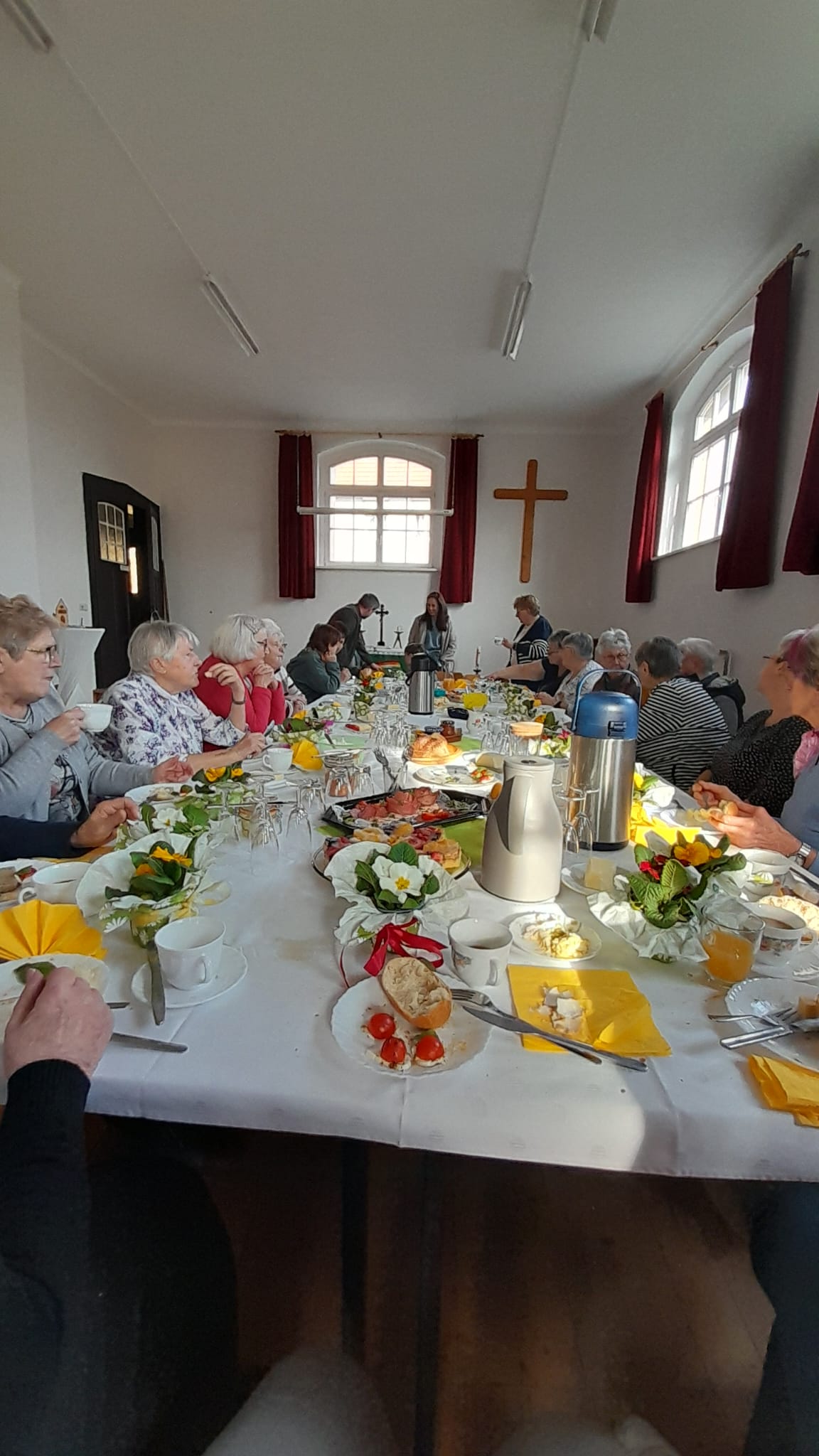 Ein frühlingshaft dekoriertes Frühstücksgedeck bot den Rahmen für einen geselligen Vormittag. Bei Kaffee und Brötchen entwickelte sich schnell eine lebhafte Gesprächsatmosphäre, geprägt von heiterem Austausch und spürbarer Aufgeschlossenheit. Die Teilnehmerinnen nutzten die Gelegenheit, miteinander ins Gespräch zu kommen und in entspannter Runde Zeit zu verbringen.