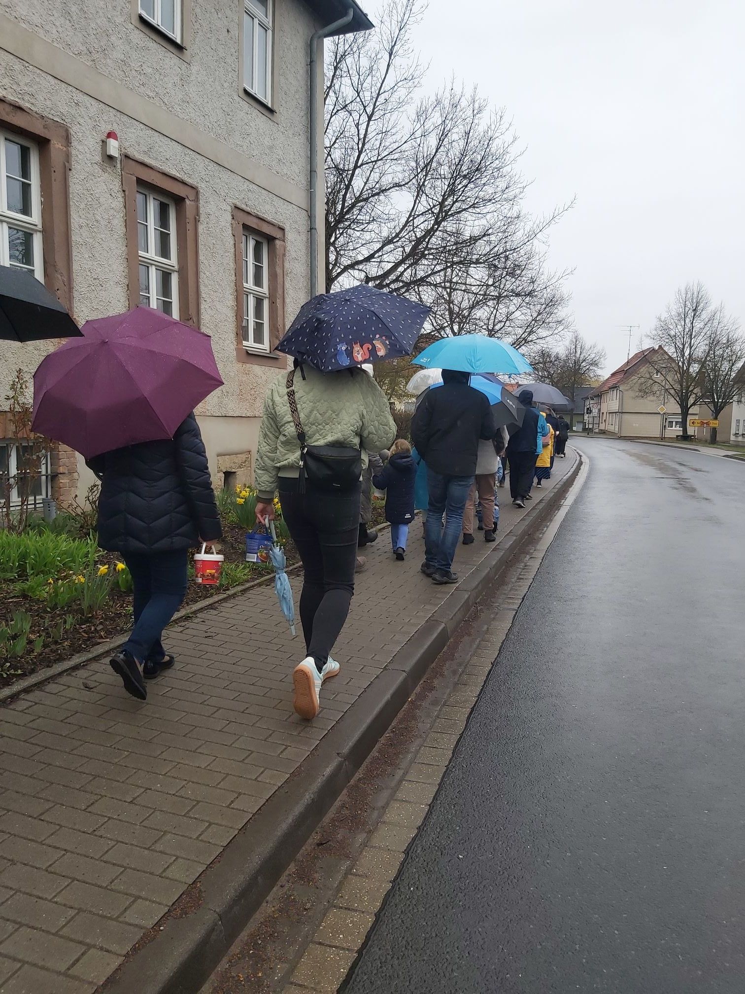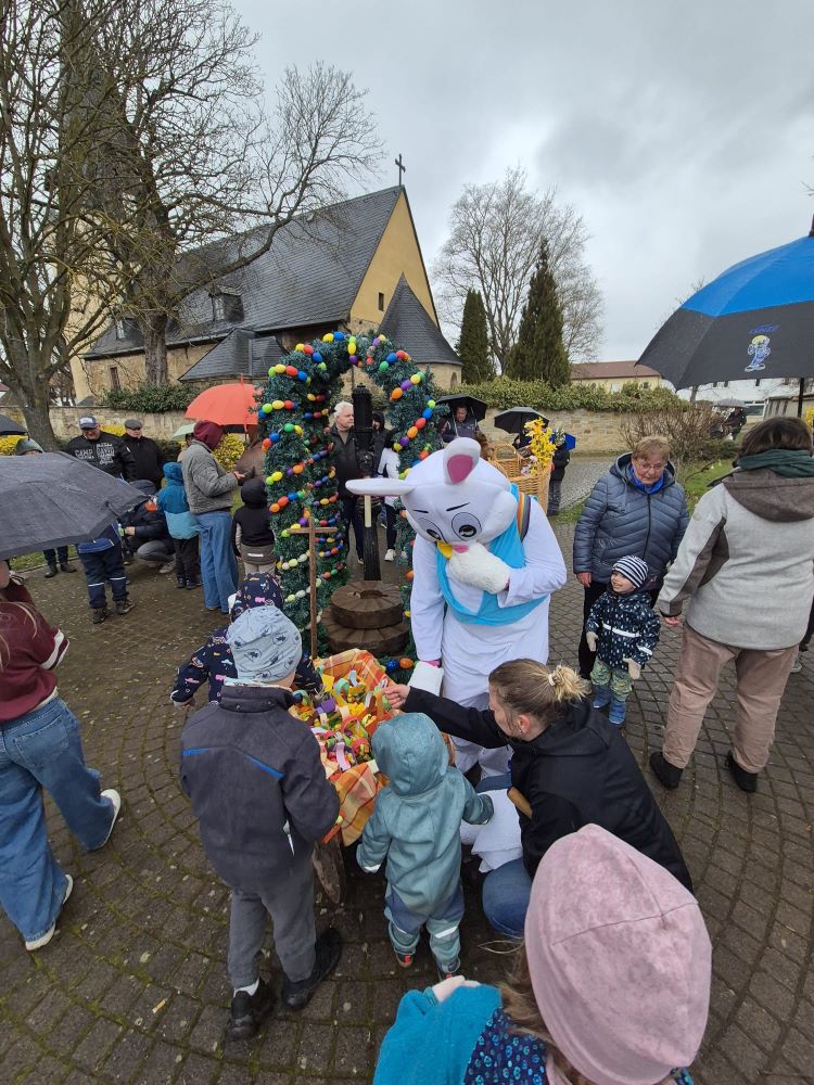 Den Auftakt bildete ein kleiner Umzug durch das Dorf: Von der Kirchgasse aus zog die Gruppe bis zur Lossa. Dort wurde beim traditionellen Osterwasserschöpfen mit kleinen Eimern Wasser entnommen und anschließend in den Brunnen gegossen. Dieser Brauch symbolisiert neues Leben zu Ostern und den Beginn des Frühlings – Wasser steht dabei als Sinnbild für Leben und Erneuerung.
